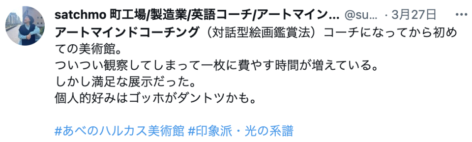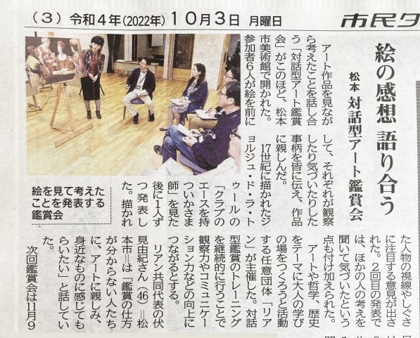 ◆絵画の見方、視点によって、想像できることが多く、他者の発想によって、自分だけでは思考しきれなかった考えが生まれることに気づけた(30才男性)
